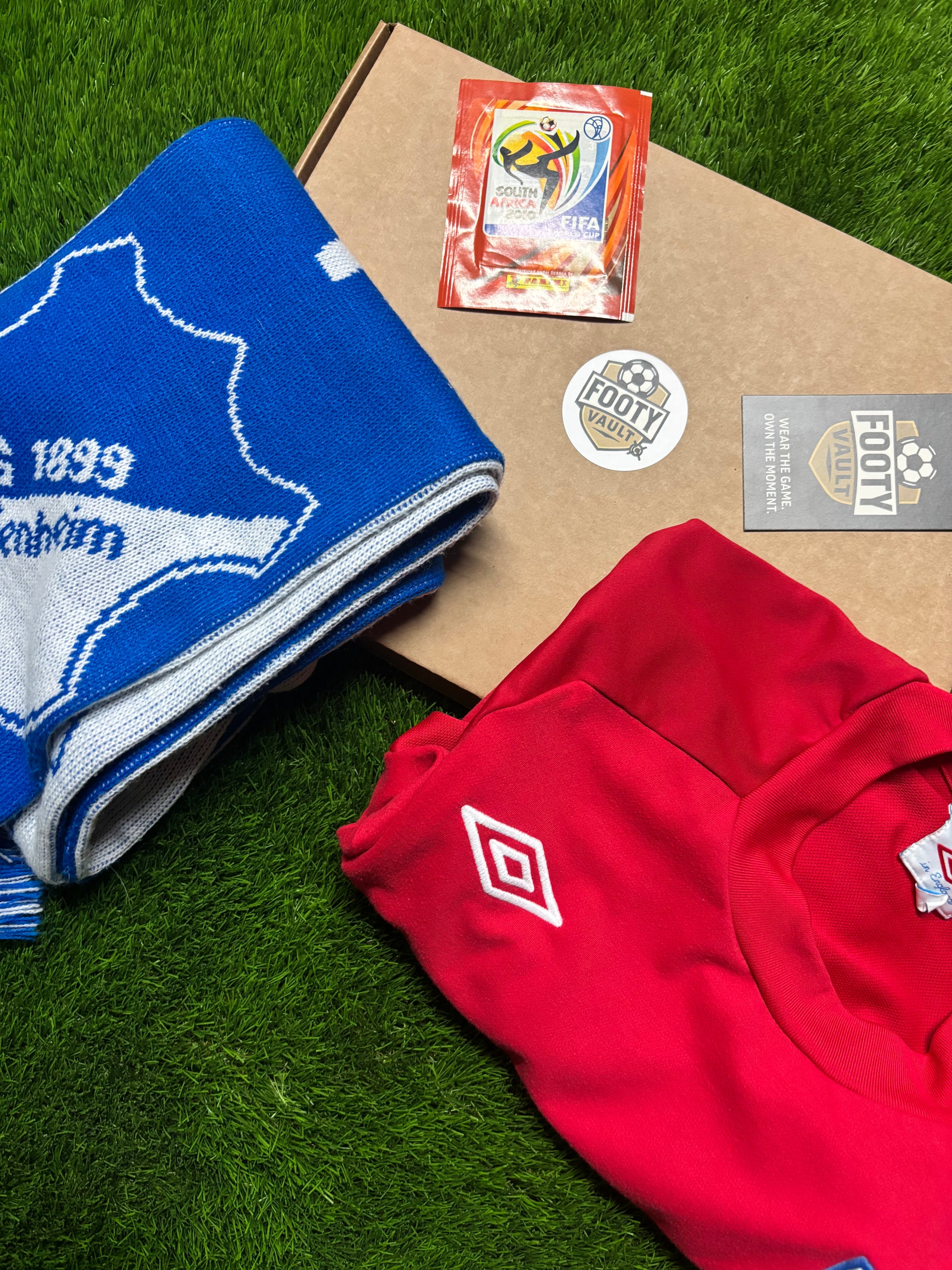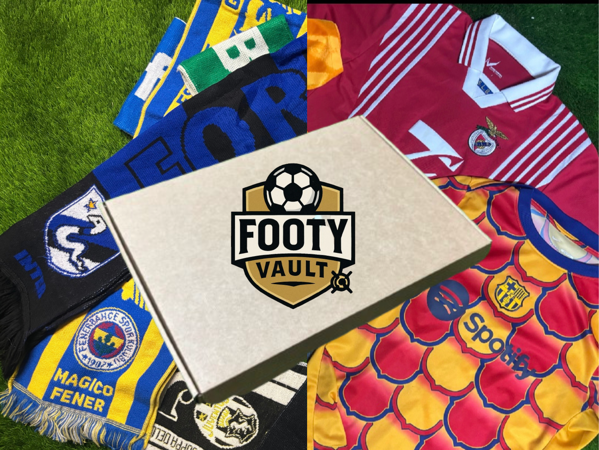 Unlock the thrill of the unknown with the Footy Vault Mega Mystery Box—your ticket to owning a piece of football history. Each box contains an authentic football shirt AND scarf from a club or country, past or present, classic or current. No hints. No repeats. Just pure football magic, wrapped in mystery.